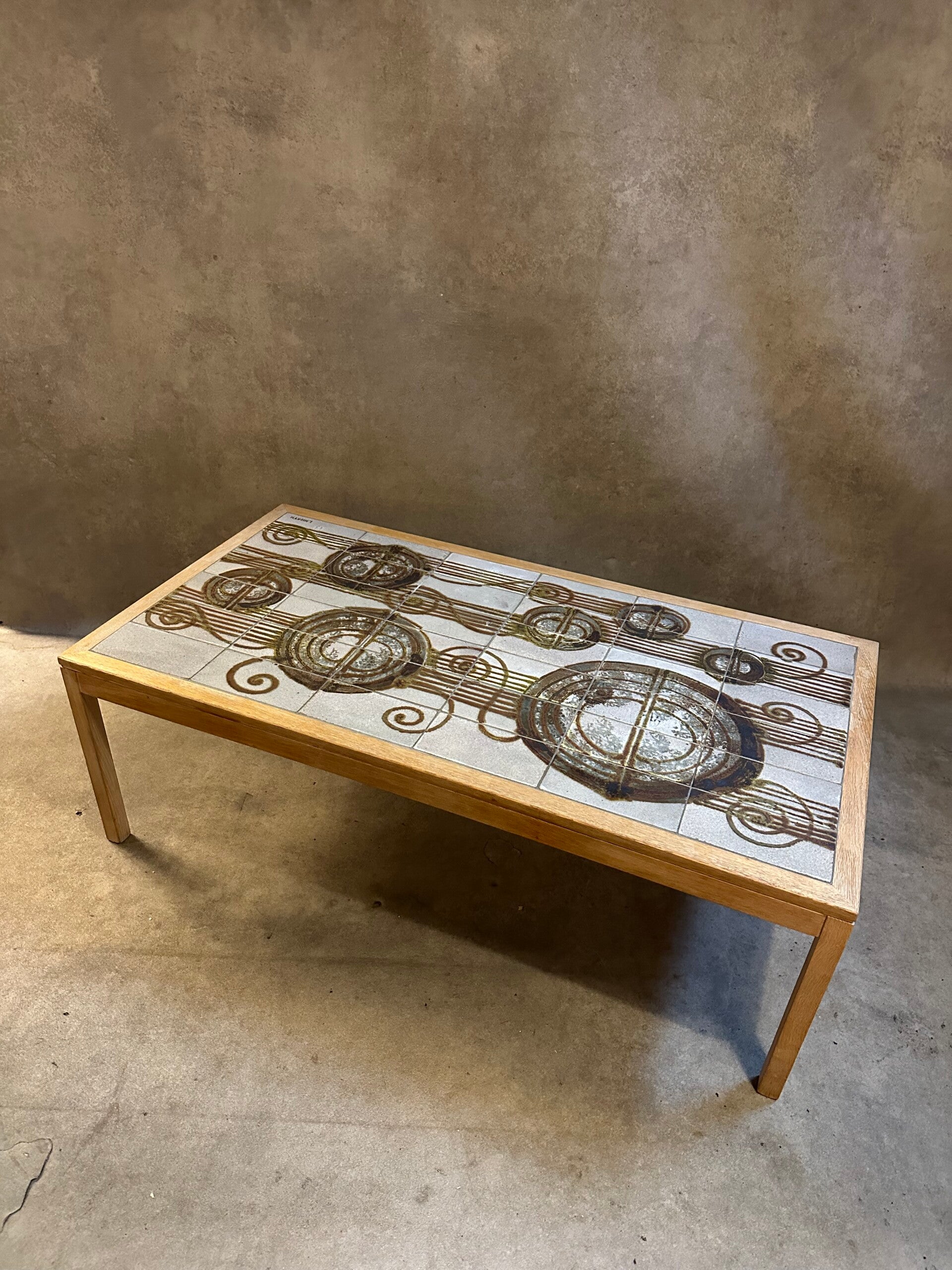 Danish coffee table with stone artwork tiles