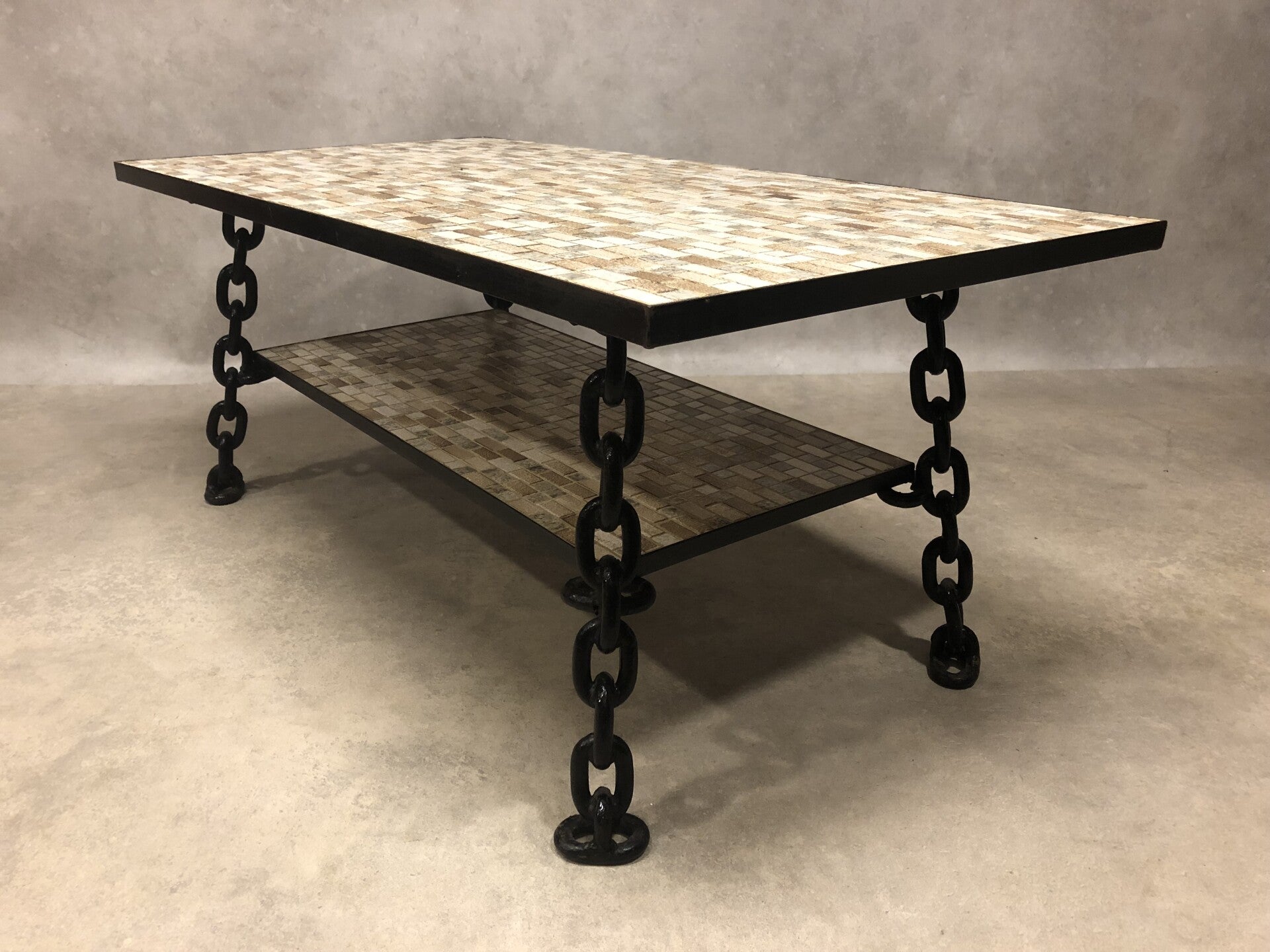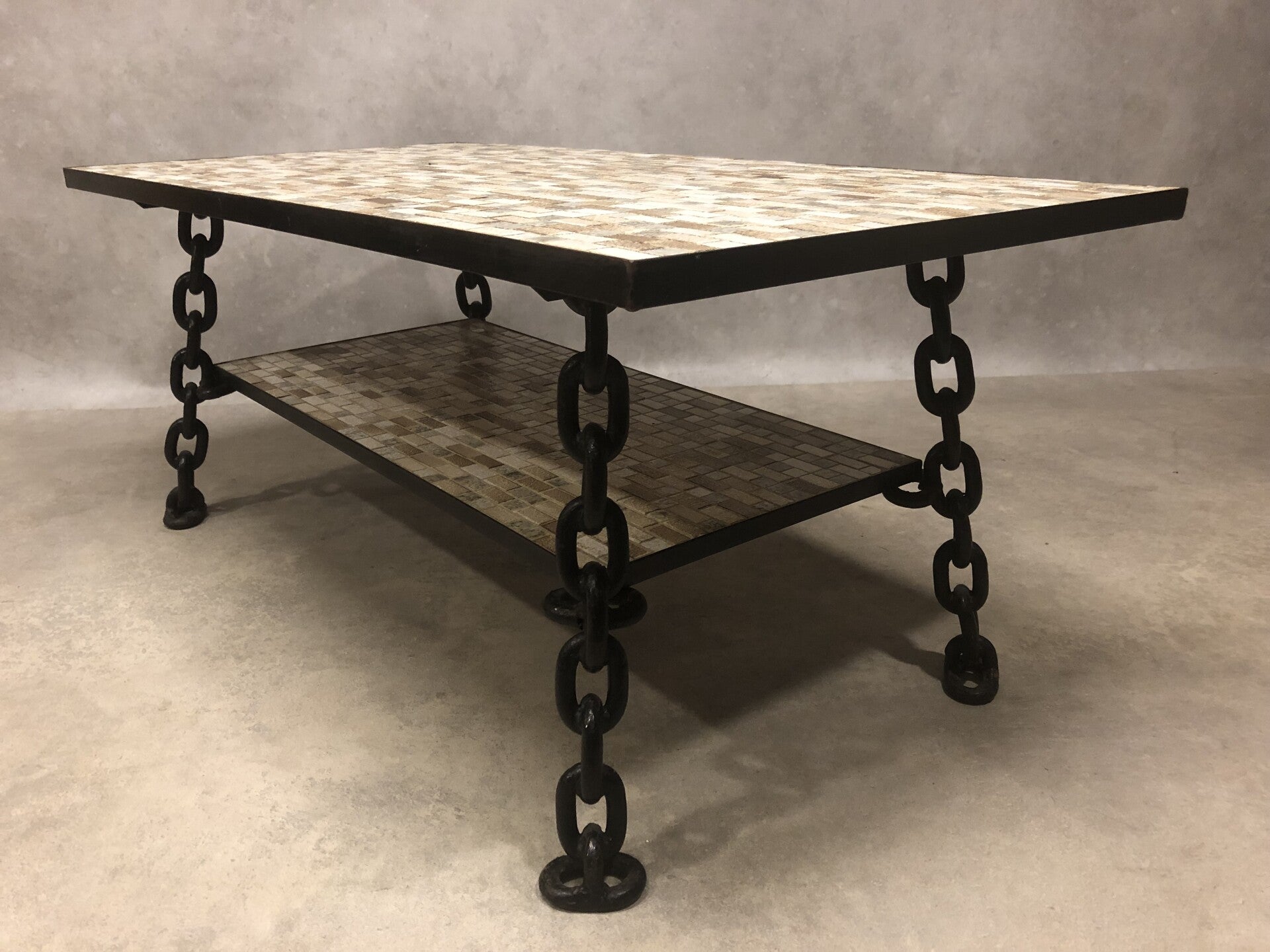 Brutalist seventies chain and mosaic coffee table