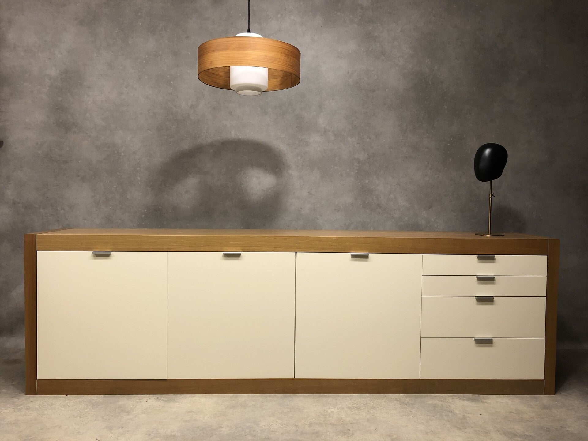 Danish wood veneer and glass lamp